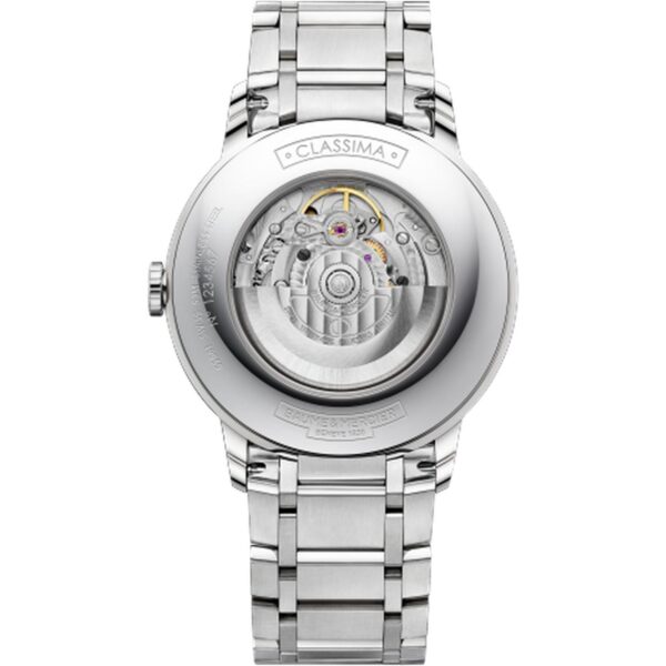 Experience the epitome of sophistication with the BAUME&MERCIER Classima 10481 men’s watch. Crafted with precision and finesse, this timepiece exudes timeless elegance. The automatic movement ensures accuracy and reliability, while the striking blue dial and steel case showcase impeccable craftsmanship. Embodying luxury, the gray steel strap complements the design flawlessly. Water-resistant up to 50 meters, this watch is as functional as it is stylish. Adorned with Roman numerals and sapphire glass, every detail exudes opulence. Elevate your style with the BAUME&MERCIER Classima 10481 – a true masterpiece in watchmaking.