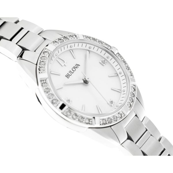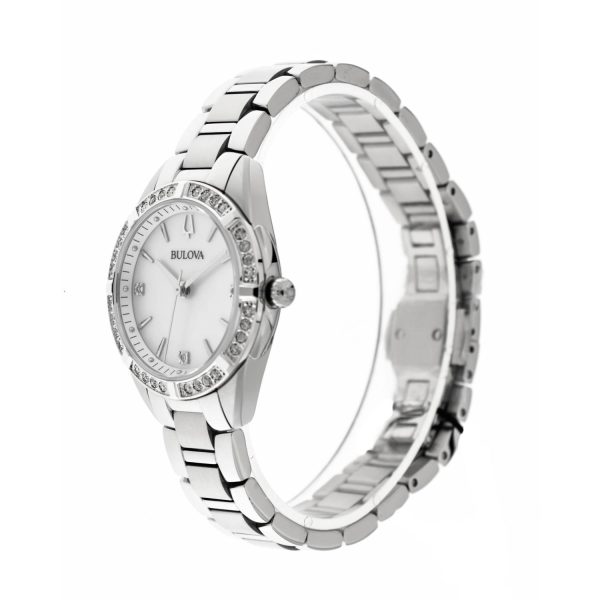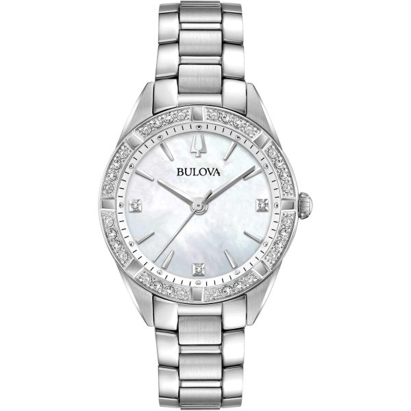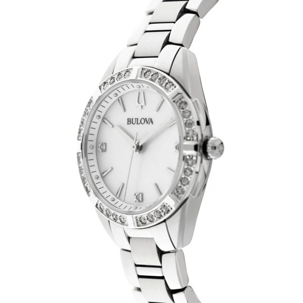 Driven by a quartz movement and boasting a caliber Q, the BULOVA 96R228 is not just a watch but a statement of refined taste. With 35 dazzling stones adorning the bezel, this timepiece is a true marvel of luxury craftsmanship.