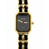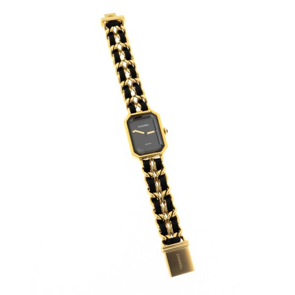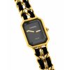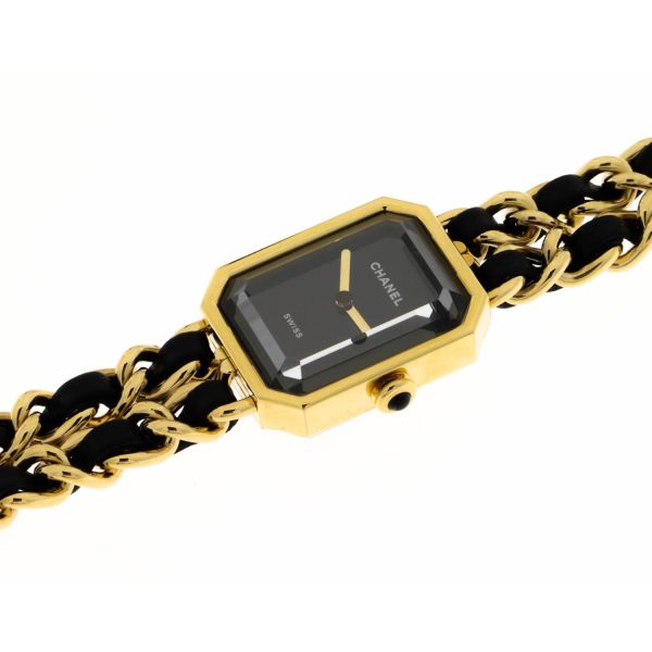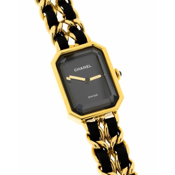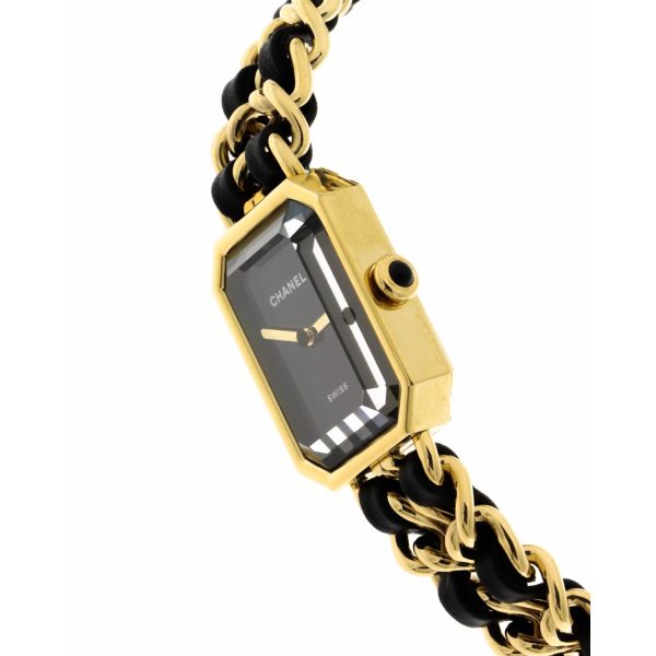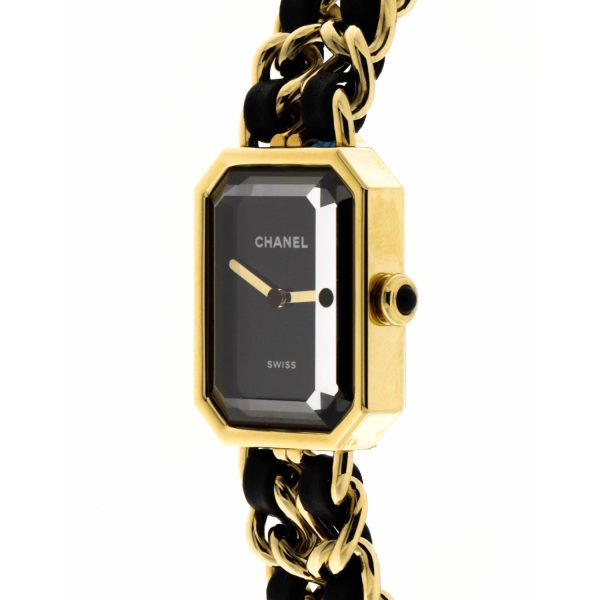 Indulge in the timeless allure of CHANEL’s premier timepiece, the H6951. Crafted with meticulous precision, this men’s watch exudes sophistication and refinement. The sleek 20×26.1 mm case, adorned in steel plated gold, is paired with a luxurious black leather strap, culminating in a harmonious blend of elegance and functionality. Powered by a precise quartz movement, this horological masterpiece boasts a sapphire crystal glass and 30m water resistance for enduring durability. Discover the epitome of luxury with the CHANEL H6951 – a true symbol of exquisite craftsmanship and style. Elevate your ensemble with this first original edition, a statement of impeccable taste and sophistication.