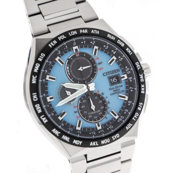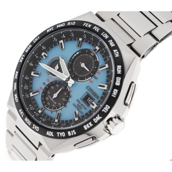 Introducing the CITIZEN AT8238-84M – AT8 Super Titanium watch, a pinnacle of elegance and innovation. This exquisite men’s timepiece boasts a titanium case and strap in a sleek steel hue, exuding sophistication and durability. The ice blue dial, adorned with no numerals, is a striking canvas for the sapphire glass and titanium bezel. Powered by the Eco Drive technology and featuring radio-controlled accuracy, this watch epitomizes precision and convenience. With a water resistance of WR 10 Bar and a deployant clasp in steel, every detail of the AT8 Super Titanium is crafted for excellence. Caliber H800 drives this masterpiece forward, setting a new standard in horological luxury. Experience timeless sophistication with the CITIZEN AT8238-84M – where impeccable design meets unparalleled performance.