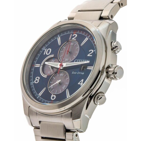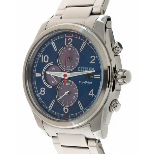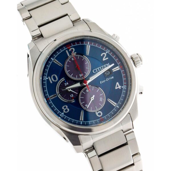 Introducing the epitome of sophistication and precision, the CITIZEN CA0671-82L Men’s Chronograph Sport Watch. Crafted with unparalleled attention to detail, this timepiece boasts a radiant blue dial housed within a resilient steel case measuring 43mm in diameter and 12mm in height.