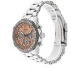 Embracing an intricate quartz movement, the watch ensures accurate timekeeping. The captivating brown dial harmonizes with the robust steel case, reflecting durability and style. Adorned with a sleek silver steel strap, it epitomizes elegance and comfort in one.