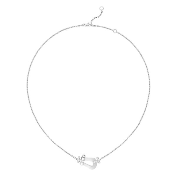 Introducing the FRED 7B0296 Collana Force 10 Necklace, a masterpiece of sophistication and elegance. Crafted from exquisite white gold and adorned with dazzling diamonds, this large model necklace embodies luxury at its finest. The iconic Force 10 design adds a touch of modernity to its timeless beauty, making it a statement piece for those with discerning taste. Elevate your style with this radiant treasure from FRED, a true symbol of opulence and refinement.