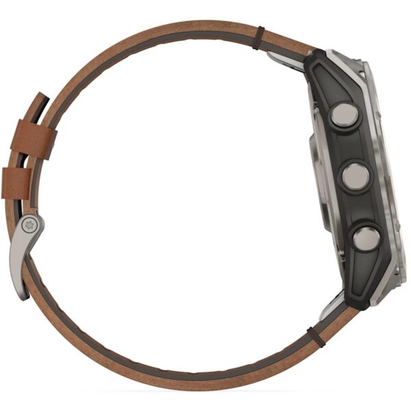 With a water resistance of 10 ATM, this masterpiece is as resilient as it is stylish. The sapphire glass and titanium bezel showcase the meticulous attention to detail. Equipped with smartwatch capabilities, the Garmin fēnix® 8 combines cutting-edge technology with timeless design. Elevate your wristwear collection with this distinguished companion, embodying a harmonious blend of performance and luxury.