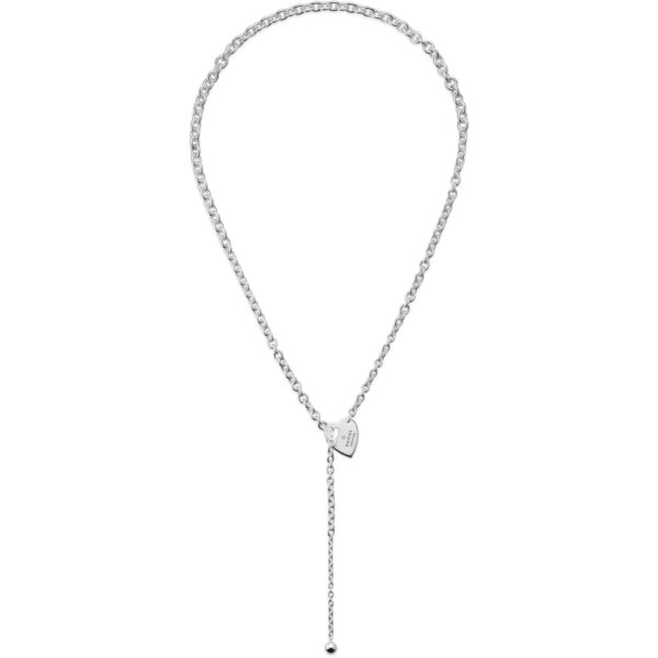 Indulge in the exquisite allure of the GUCCI Trademark Lariat necklace, a sterling silver masterpiece adorned with a delicate heart motif. Elevating your ensemble with timeless elegance, this piece epitomizes sophistication and luxury. Crafted to perfection, this necklace is a symbol of impeccable craftsmanship and refined taste, making it a must-have accessory for those who seek nothing but the finest in jewelry. Embrace the essence of opulence with this GUCCI creation that exudes charm and prestige effortlessly.