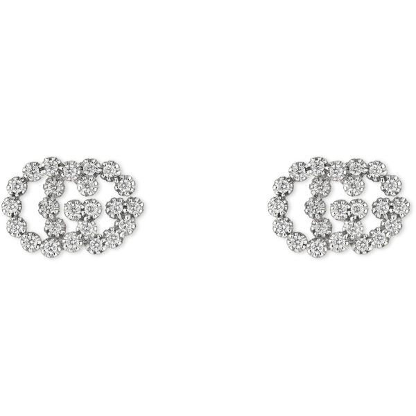Indulge in the exquisite allure of GUCCI’s GG Running stud earrings, a harmonious blend of elegance and opulence. Crafted from 18kt white gold and adorned with glistening diamonds, these earrings encapsulate the essence of luxury. The iconic GG motif shines with sophistication, making a statement of refined taste and timeless style. Elevate any ensemble with these meticulously crafted treasures, a true testament to GUCCI’s unparalleled craftsmanship and prestige.