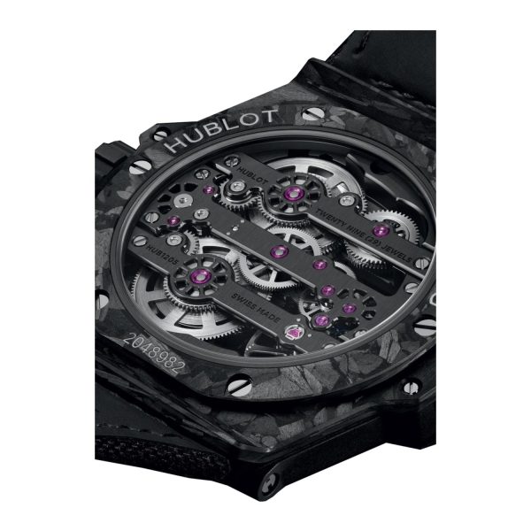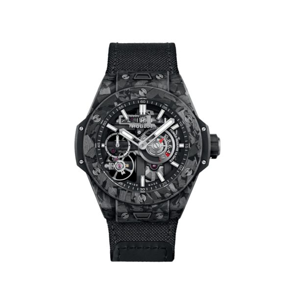 Introducing the exquisite HUBLOT – 444.QN.1170.NR – BIG BANG MECA – 10 FROSTED CARBON 42 MM watch, a pinnacle of luxury horology for the discerning gentleman. Crafted with meticulous attention to detail, this timepiece exudes sophistication and refinement.