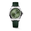 Encased in steel, the 38.00mm diameter watch boasts a mesmerizing sunray green dial that captivates with every glance. The quartz movement within, caliber L888, ensures unwavering accuracy and reliability.