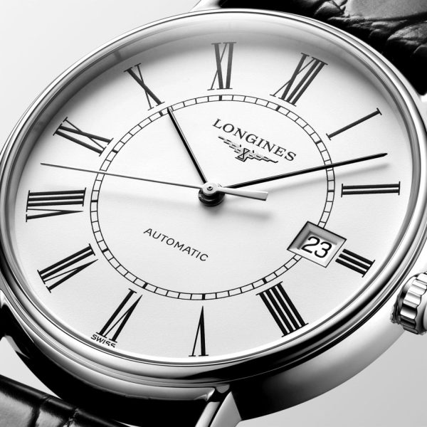Introducing the Longines PRÉSENCE L4.921.4.11.2, a masterpiece in men’s watches that exudes timeless sophistication. Crafted with precision and finesse, this automatic timepiece features a classic white mat dial adorned with elegant Roman numerals.