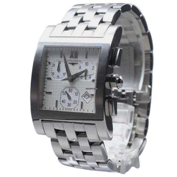Introducing the epitome of sophistication and precision, the LONGINES L56684 Dolce Vita Carree Chronograph White Dial Watch. Exuding timeless elegance, this masterpiece from LONGINES is crafted for the discerning gentleman who values both style and functionality. The sleek white dial is complemented by intricate chronograph features, making a bold statement of luxury and refinement. Impeccably designed and housed in a square case, this watch is a true symbol of exquisite craftsmanship. Elevate your wrist game with this horological marvel that seamlessly blends tradition with innovation.
