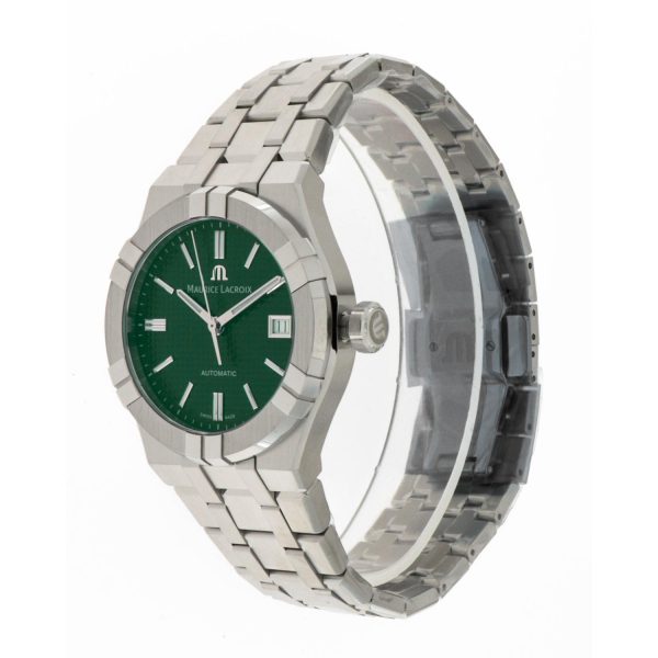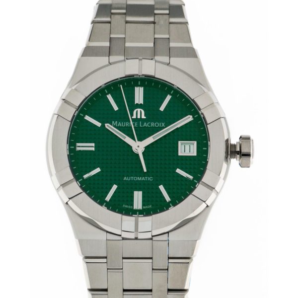 Introducing the epitome of sophistication and precision craftsmanship, the MAURICE LACROIX AIKON Automatic 39mm watch exudes timeless elegance. Meticulously crafted with a steel case and strap, adorned with a captivating Verde effetto soleil decorazioni Clous de Paris dial, this horological masterpiece stands as a symbol of luxury.