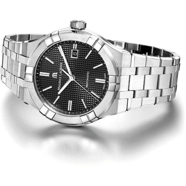 Experience the epitome of sophistication with the MAURICE LACROIX AIKON Automatic 42mm watch. Meticulously crafted with a sleek stainless steel case and strap, this timepiece exudes timeless elegance. The black sun-brushed dial is adorned with Clous de Paris detailing, adding a touch of refinement. Powered by the automatic caliber ML115 movement, this watch seamlessly blends luxury and functionality. With a water resistance of 20 ATM and sapphire glass, the MAURICE LACROIX AIKON is as durable as it is stylish. Elevate your wrist game with this horological masterpiece.