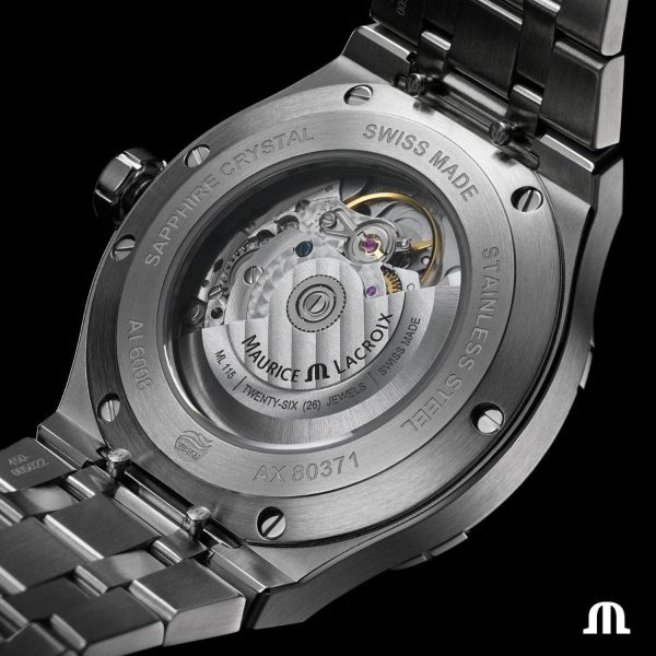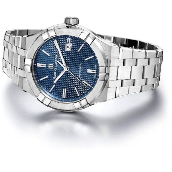 Introducing the MAURICE LACROIX AIKON Automatic 42mm for men, a masterpiece of precision and elegance. This timepiece boasts a captivating blue sunburst dial adorned with Clous de Paris detailing, housed in a robust steel case with a matching steel strap and deployant clasp for seamless sophistication. With a water resistance of 20 ATM, this watch is as functional as it is stylish. Powered by the automatic caliber Movimento ML115, its sapphire glass and steel bezel ensure durability and luxury. Elevate your style with the timeless allure of MAURICE LACROIX.