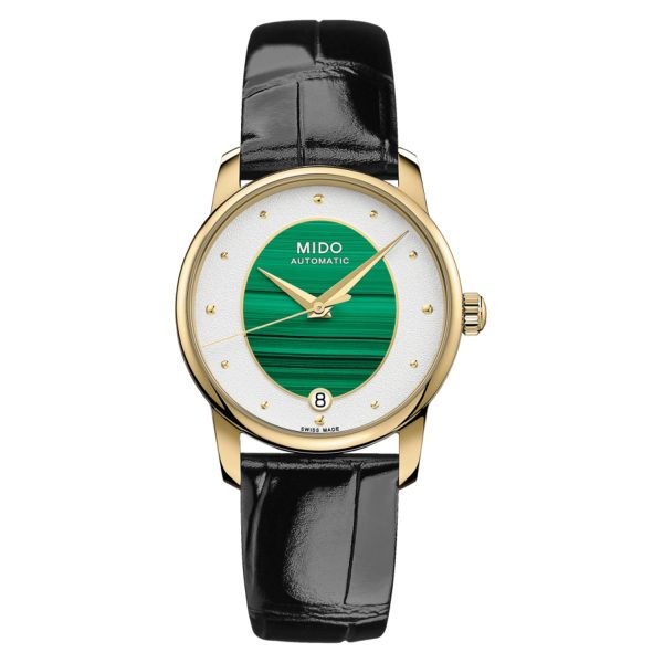 Elevate your style with this luxurious men’s watch, a symbol of elegance and distinction. Embrace the allure of MIDO’s craftsmanship and indulge in the essence of timeless beauty with the Baroncelli Wild Stone Malachite timepiece.