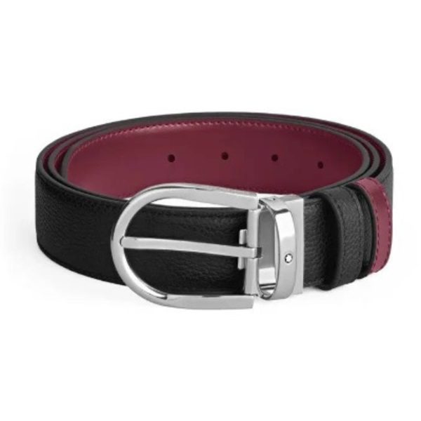 MONT BLANC – 199665 – Reversible Black Cassis Belt with Horseshoe Buckle