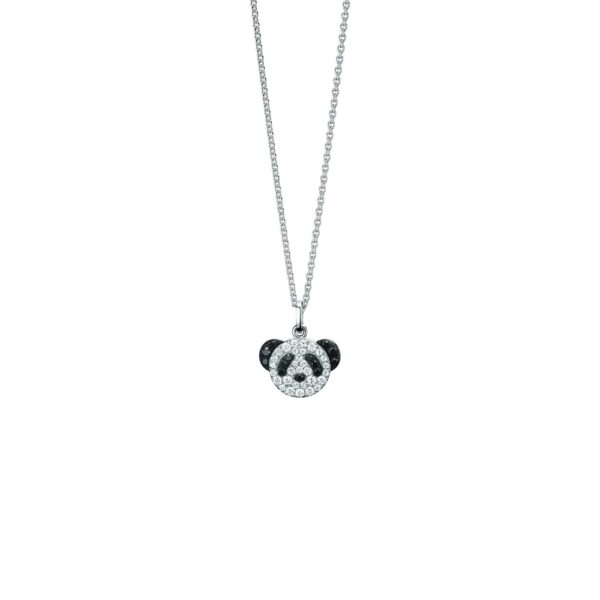 Qeelin – BBNPT11WBBK – Petite Bo Bo necklace in 18k white gold with diamonds and black diamonds