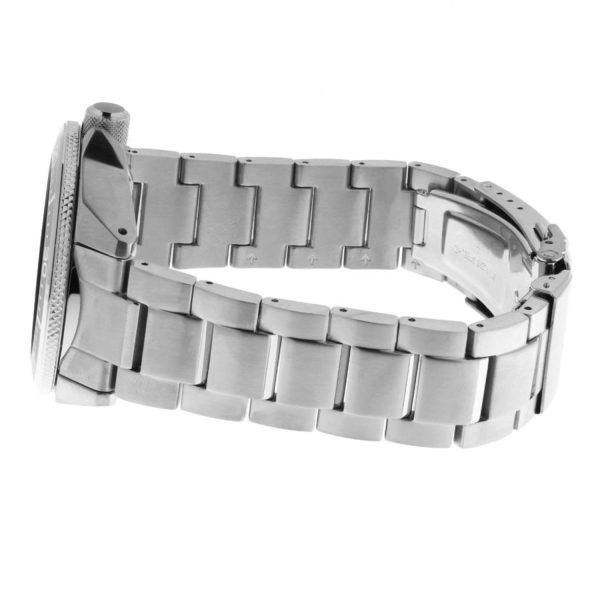Its black dial is encased in robust steel, complemented by a sleek silver steel strap secured with a Clasp deployante buttons safety. With a case diameter of 43.8mm and a water resistance of 20 Bar, this watch is as versatile as it is luxurious.