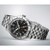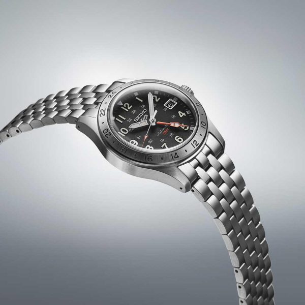 The automatic movement of the Seiko 5 caliber 4R34, adorned with 24 stones, ensures precision and reliability. Encased in steel with a sleek black dial, this watch boasts a refined 39.38mm diameter and 13.6mm height, exuding a perfect balance of style and functionality.