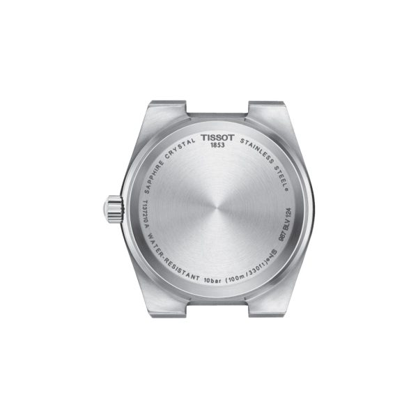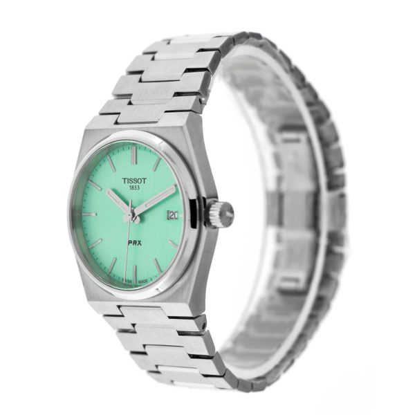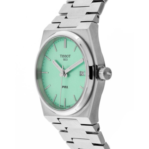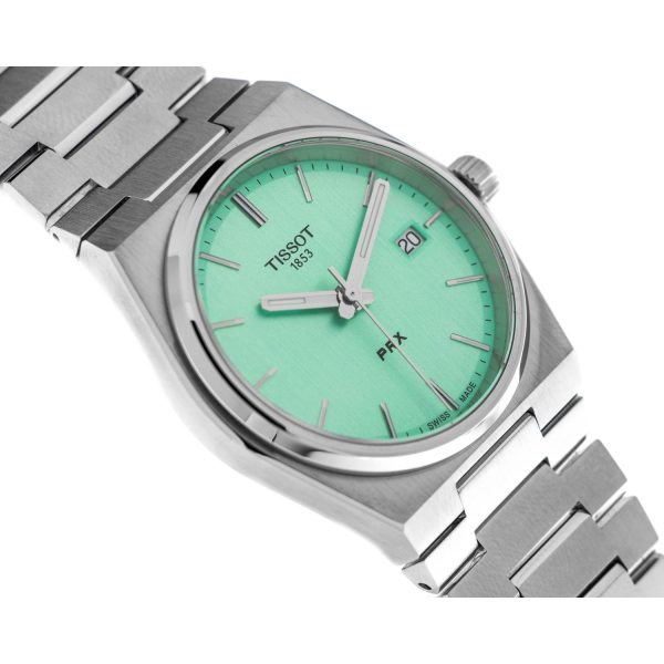 Introducing the TISSOT PRX 35mm (T137.210.11.091.00) from the esteemed TISSOT collection. Meticulously crafted for the modern gentleman, this timepiece exudes sophistication and refinement. Encased in stainless steel with a captivating verde chiaro dial, its 35.00mm silhouette epitomizes understated elegance. Powered by a precise quartz movement, this watch is a fusion of style and functionality. Boasting a sapphire crystal and 10-bar water resistance, it ensures durability without compromising on grace. The deployant clasp steel strap adds a touch of luxury, making it a timeless accessory for the discerning connoisseur. Experience the epitome of Swiss craftsmanship with the TISSOT PRX 35mm.