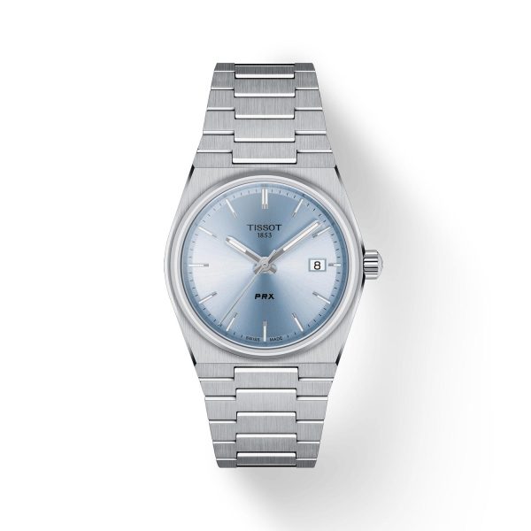 Introducing the TISSOT PRX 35mm (T137.210.11.351.00) for discerning gentlemen seeking a blend of sophistication and precision. Crafted with a steel case and bracelet in a refined gray hue, this quartz timepiece exudes timeless elegance. The light blue dial, devoid of numerals, is protected by scratch-resistant sapphire glass, while a deployant steel clasp ensures a secure fit. With a water resistance of 10 bar, this watch seamlessly marries style with functionality. Elevate your wrist game with the TISSOT PRX 35mm, a symbol of luxury and craftsmanship.