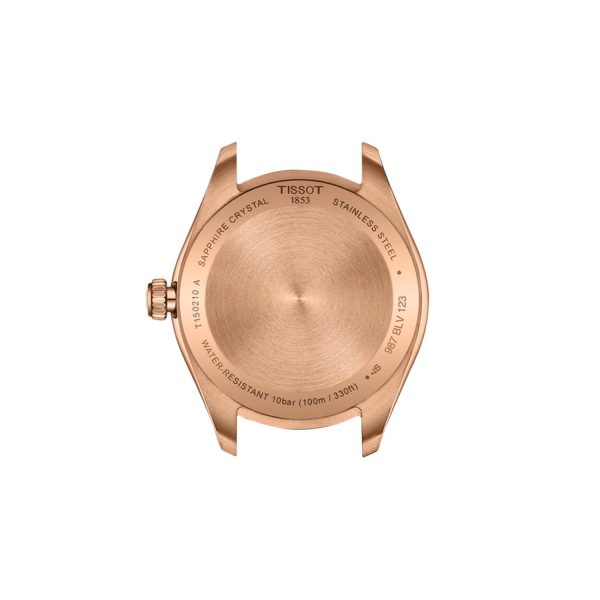 Indulge in the timeless sophistication of the TISSOT PR 100 34mm timepiece, exuding elegance and refinement in every detail. Crafted with precision, this men’s watch features a lustrous steel case enveloping a rich brown dial, accentuated by a captivating gold Pink 5N strap. With a quartz movement and sapphire glass, this watch seamlessly marries style with functionality. Designed to withstand depths of up to 100 meters, it is a symbol of luxury and sophistication. Elevate your ensemble with the TISSOT PR 100 34mm, a true masterpiece of horological artistry.