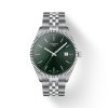 The green dial is encased in durable steel, complemented by a gray strap with a Clasp farfalla pulsanti for a seamless fit. With a case diameter of 40mm and a slender height of 8mm, this watch effortlessly balances style and comfort.